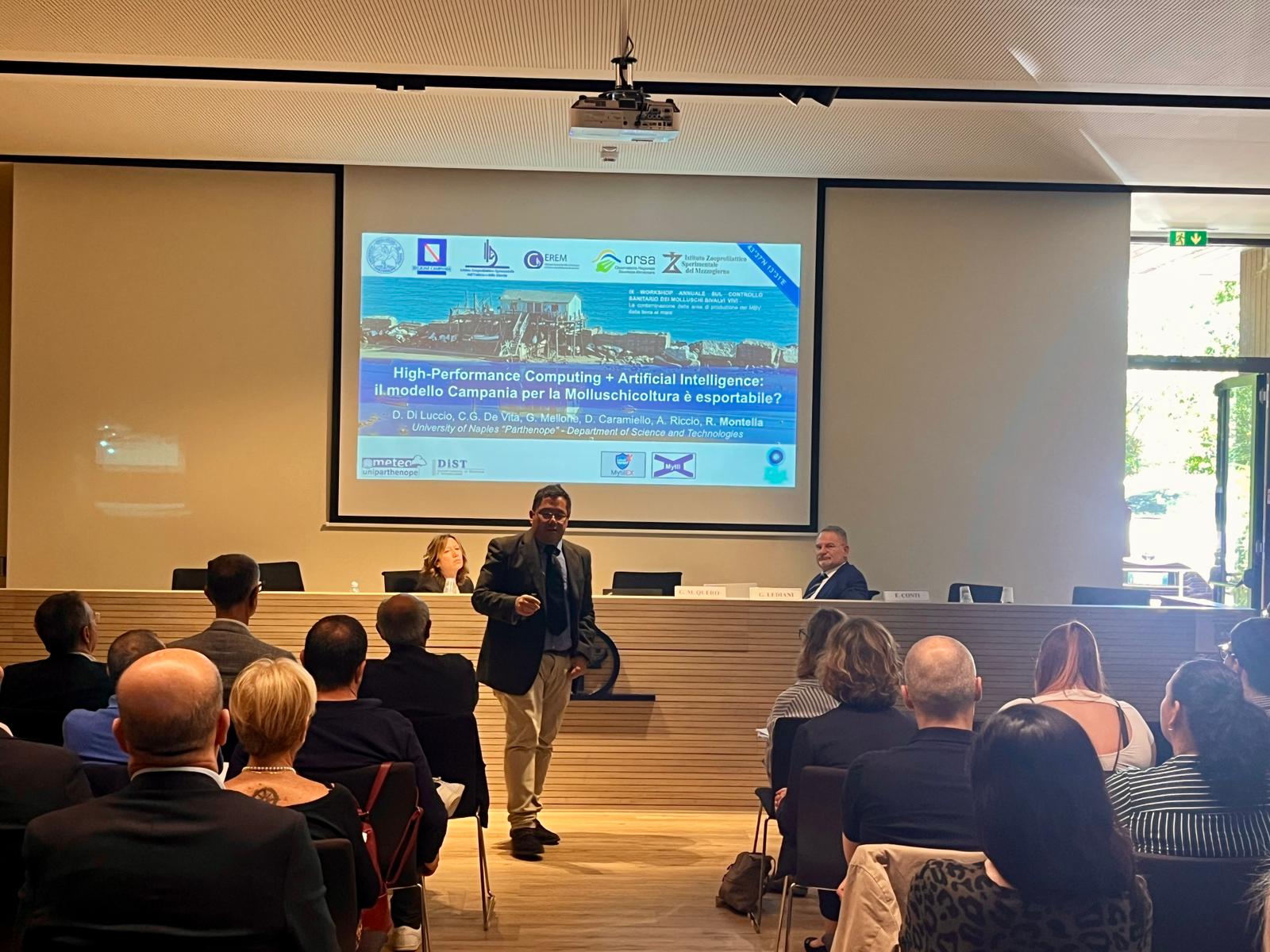 Within the framework of the MytilX research project, Raffaele Montella has been invited to have a talk with the tile “High-Performance Computing + Artificial Intelligence: is the Campania methodology for mussels bacterial contamination scalable?” at the “IX WORKSHOP ANNUALE SUL CONTROLLO SANITARIO DEI MOLLUSCHI BIVALVI VIVI – La contaminazione delle aree di produzione dei MBV: dalla terra al mare”.
