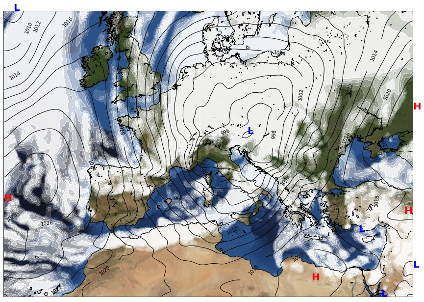In summary, while the Mediterranean enjoys some warmth, much of Europe is under the grip of cold temperatures, with significant cloud cover and precipitation in the central and eastern parts. Stay warm, and take care if you are traveling in these areas.