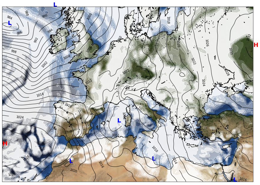 In terms of atmospheric pressure, a low-pressure system is making its presence felt over the North Atlantic, influencing weather conditions over northwestern Europe. Meanwhile, central and eastern Europe are under the influence of a high-pressure system, contributing to the clear skies and calm conditions.